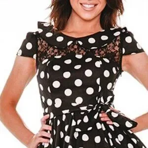 Hearts & Roses London Black White Polka Dot Lace Cap Sleeve Swing Dress EUC 14