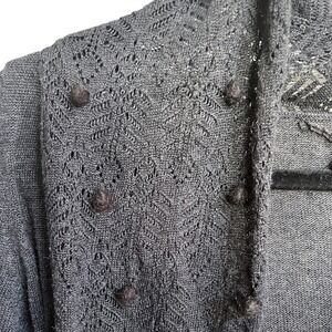 Anthropologie Knitted & Knotted Boho Gray Pom Cardigan Sweater M