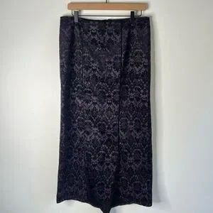 LIP SERVICE Vintage Black and Purple Velvet Lace Maxi Pencil Skirt Large LA USA