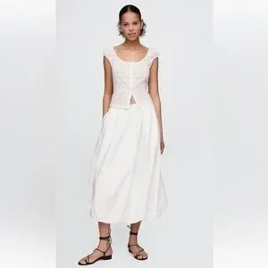 GAP Women's Crisp White Bubble Hem Midi skirt size medium m NEW w tag