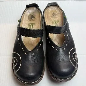 El Naturalista Black Leather Mary Jane Flats EU 38 White Stitch Comfort Shoes