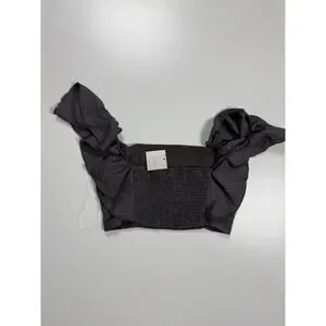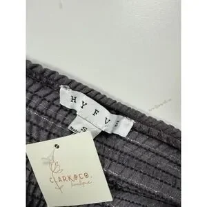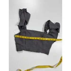 Hyfve Womens Charcoal Grey Pinstripe Ruffle Strap Smocked Back Crop Top Small