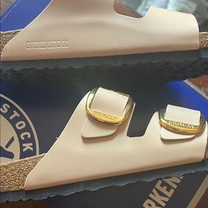 BIRKENSTOCK ARIZONA BIG BUCKLE HIGH SHINE NEW BEIGE SIZE 9 WOMENS