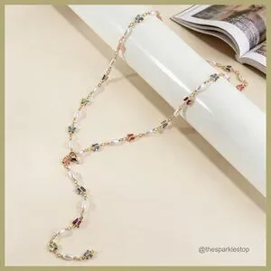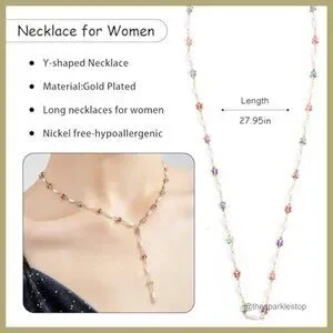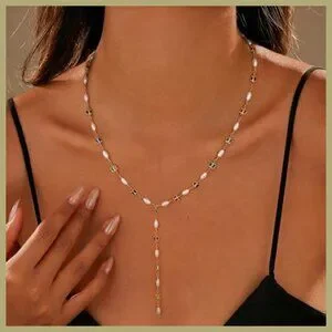 A trendy, layered necklace featuring a chic Y-shaped design with beaded details and a long drop chain. Crafted with a polished 14K gold finish, it adds an elegant touch to any outfit, perfect for daily wear or special occasions.