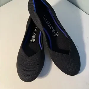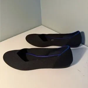 Rothy's Black Knit Ballet Flats with Subtle Blue Trim