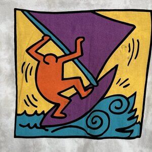 Keith Haring Wind Surf Womens Crop Top Tie-Dye T Shirt XL Repro Pop Art Grafitti