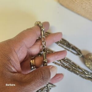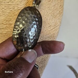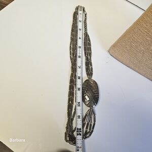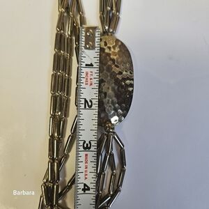 Vintage Offset Silver-tone Hammered Oval with Metal Cylinder Tube Beads Necklace. 80s. Hook clasp. Main bead is approx 2.25" in length. Pre-owned.