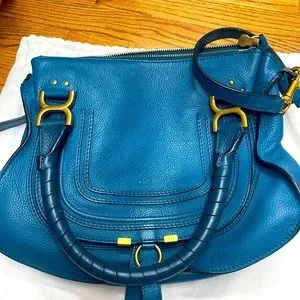Elegant Chloe crossbody bag. Rich blue leather. Gold hardware details. Stylish and versatile. Chloe bag in good condition with authenticity card included. Does not have a dust bag. This bag does have signs of normal wear on the strap and wear on the leather of the main zipper (see picture).