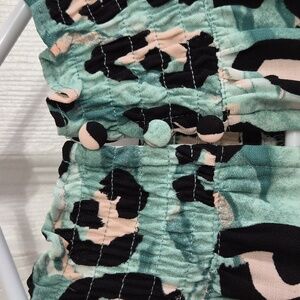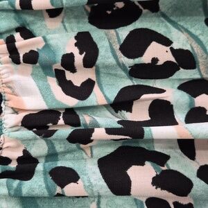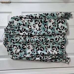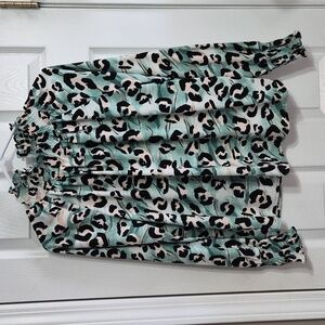 Nine West Long Sleeve Smocked Leopard Print Green Top Blouse Size Small