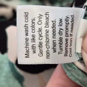 This blouse features a sophisticated animal print in shades of green, tan, and black. It has an elegant mock neck with three buttons fastening at the back. This charming top is a size Small. It is in excellent condition, only worn once. It would be a wonderful addition to your wardrobe.