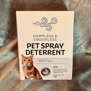 Ensure a fresh environment for your cat with the Harmless & Odorless Pet Spray Deterrent Refill. This spray is perfect for keeping cats out of unwanted areas.