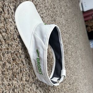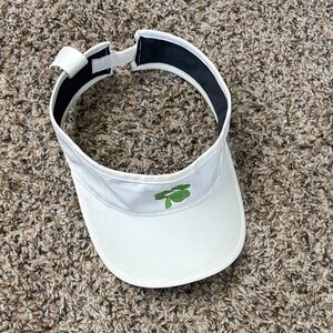 Stylish white visor featuring a green clover embroidery. Perfect for sunny days.