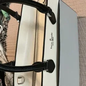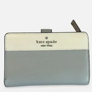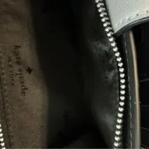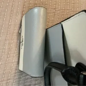 Chic Kate Spade satchel with matching wallet. Stylish gray and cream tones. Perfect for any occasion. This is Brand new- I bought for my mom & she likes small crossbody purses so I had to get another but I kept this one but I’ve had it put up, I’m like her I like the small. This is a very nice purse and bilfold wallet. The colors are really nice and it’s in perfect condition, not a place on it. The strap is inside of purse. Shoulder or Crossbody.