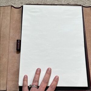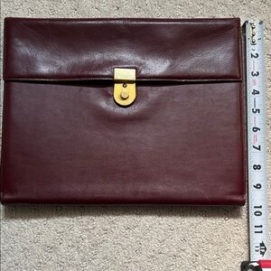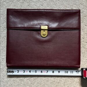 Vintage Elegant leather burgundy padfolio. Secure brass-tone closure (no lock/key) . Smooth, structured exterior for a polished professional leather look. Ideal for meetings and daily business carry. Deep wine hue adds understated refinement.
