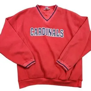 St. Louis Cardinals mens Large red Logo Athletic V-neck sweatshirt delivering cozy MLB baseball team style for stadium trips, watch parties, or laid-back everyday outfits.