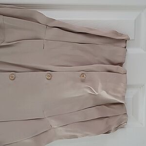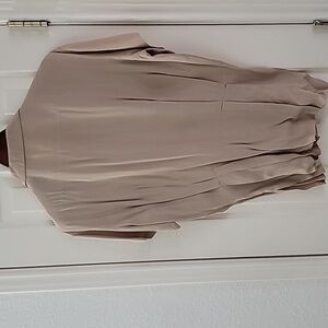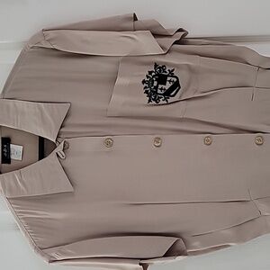 Vintage Ladies Beige Short Sleeve Button-Up Shirt With Crest Like Logo Sz Small