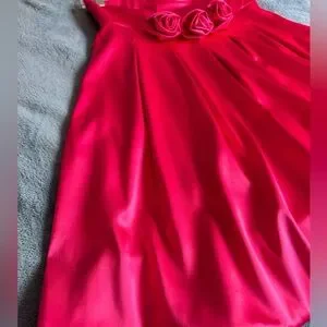 Chic Barbie pink strapless dress featuring elegant rose accents and a bubble skirt. Perfect for special occasions. In mint condition, only worn once for an event. Size 9.