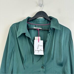 Free People Satin Emery Shirtdress Green Size Large NWT