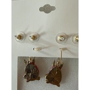 Easter Bunny Earrings SPRING Pearls Rhinestones Gold Hoops Earrings Lot