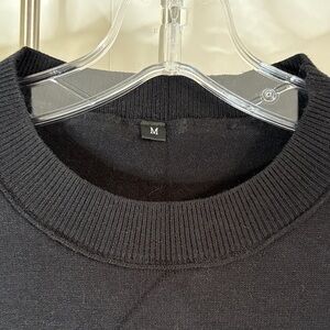 Set: Chic black sweater with cream stripes. Crew neck design. Perfect for casual wear.