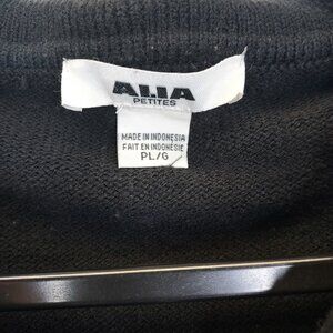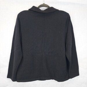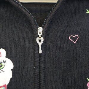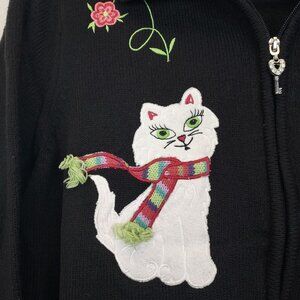 Alia Cat Cardigan Sweater Women's Petite L Black Full Zip Applique Embroidery