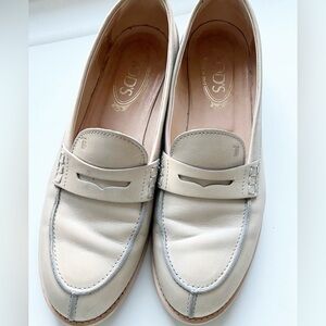 Tod’s light almond/cream leather penny loafers sz 39 (8.5-9)
