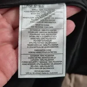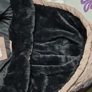 • It features front zipper pockets, a removable fur-lined hood, and cuffs with thumbholes for warmth.