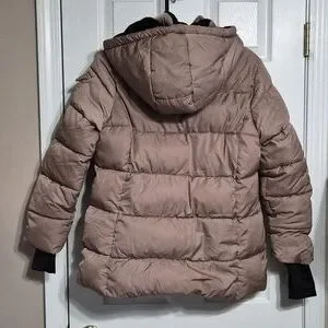 Steve Madden Faux-Fur-Lined Hooded Puffer Coat Tan With Black Size Large