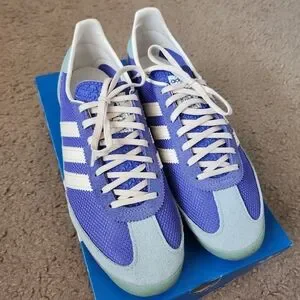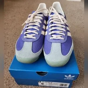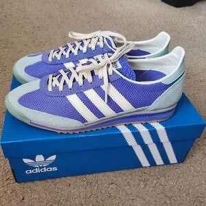LIKE NEW ADIDAS SL72 OG SNEAKERS! COMES IN ORIGINAL BOX. SIZE 9 WOMENS. BEAUTIFUL UNIQUE BLUE COLORS! BARELY HAS SIGNS OF WEAR. ONLY WORN COUPLE OF TIMES. PERFECT POP OF COLOR! REASONABLY PRICED. DON'T MISS THIS ONE!!!