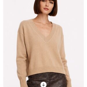 V-Neck Cashmere Sweater szS Camel INTERMIX Elroy Mint cond Old Money PriceFirm