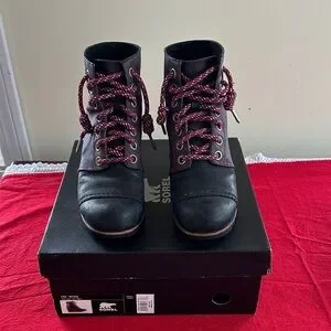 SOREL PDX Wedge Bootie in purple/dark gray with red laces, Size 8.5