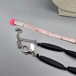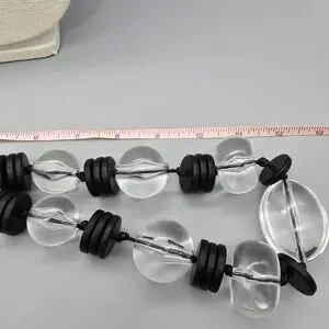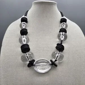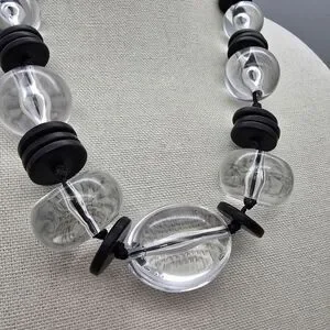 Bold necklace with clear and black beads. Perfect for a chic look.
