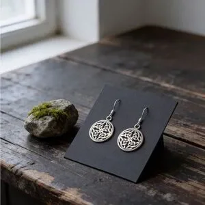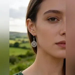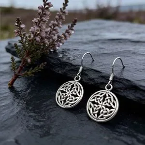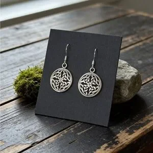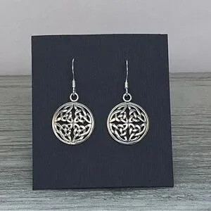 Style tags: 925 Sterling silver celtic earrings dangle drop minimalist bohemian boho minimalist knot round circle