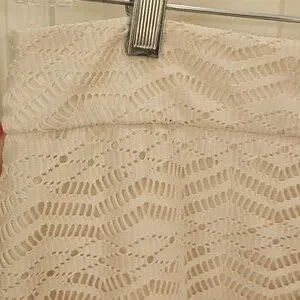 Tags: cream fringe skirt, crochet-look, openwork lace, boho, pull-on, beachy, resort