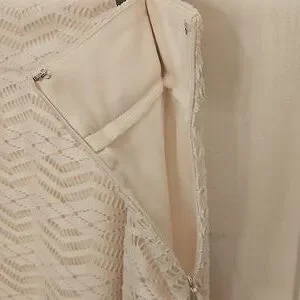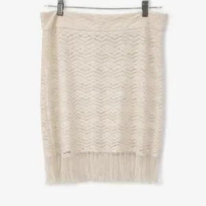 Cato Cream Fringe Crochet-look Lace / Openwork Knit Knee Length Skirt Sz 14