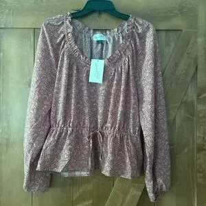 BNWT. Size large. Elastic neckline and wrists. Long sleeve. Elastic waistband with functional tie. Gorgeous floral mauve pattern/color. Light weight.