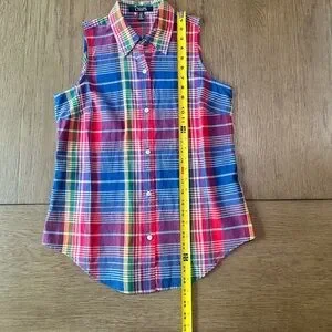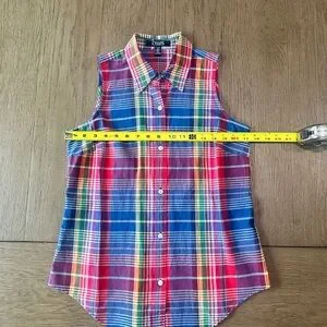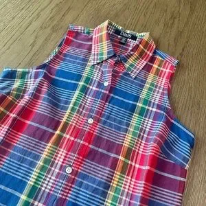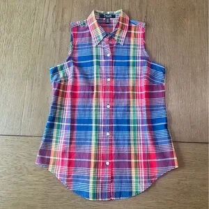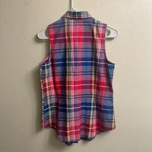 Chaps Sleeveless Button Down Vibrant Plaid Top Petite M