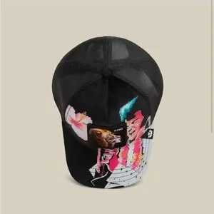 The goorin bros. "Uh Huh King" Trucker Hat featuring Elvis design is a stylish accessory suitable for both men and women. This multicolored hat showcases a classic trucker style with a unique Elvis theme, making it a standout piece in any outfit. The one-size design ensures a comfortable fit for most wearers looking to add a touch of personality and flair to their look.