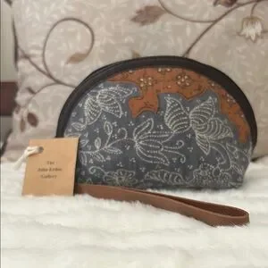 John Erdos Gallery Boho Artisan Wristlet Makeup Bag Cosmetic Pouch Leather Strap