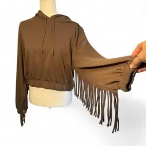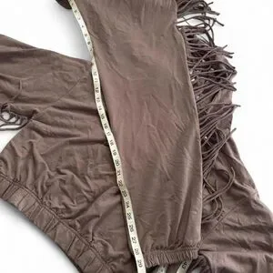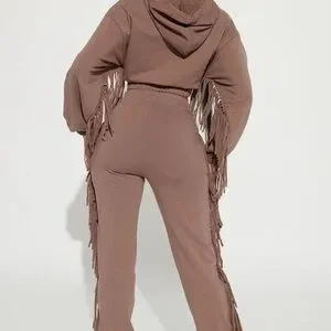 Jolie & Joy mocha fringe hoodie and pants set Size medium. Pants are a medium top I’d tagged a large but fits like a medium. So cute! Worn twice for a Nashville trip. Still in excellent condition! Originally bought for $60