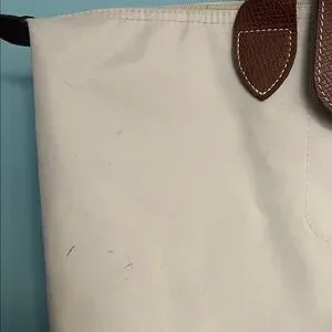 Longchamp Women's Pink Canvas Tan Tote Bag with Brown Trim