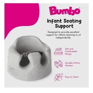 The Bumbo Gray Baby Floor Seat offers comfort and support for your little one. Its ergonomic design helps babies sit upright, making it perfect for playtime or feeding. The soft, durable material ensures safety and ease of cleaning.