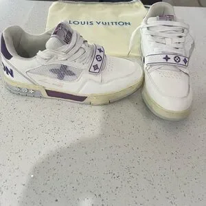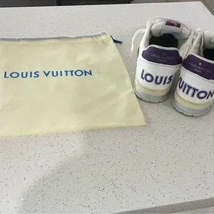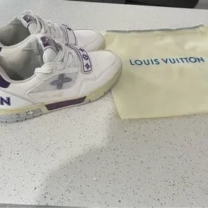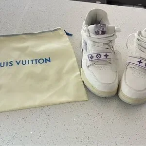 Louis Vuitton White and Purple Low-Top Sneakers with Logo Accents