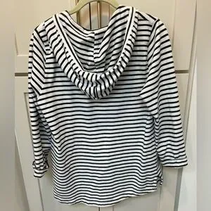 Lands End Lightweight hooded top in size medium (6-8) with classic black and white stripes. Pockets! In good worn condition.