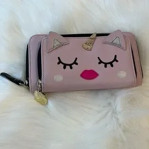 Luv Betsey by Betsey Johnson wallet coin purse cat unicorn pink zipper closure