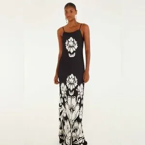 Farm Rio: Black & White Floral Arabesque Slip Lenzing Viscose Maxi Dress