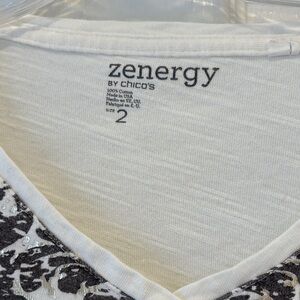 Zenergy Cream V-Neck Long Sleeve Top with Black & Gold Accent