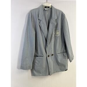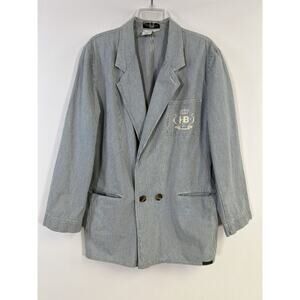 Harve Benard Vtg 90s Women's Blazer White Blue Striped Nautical Women’s L Cotton