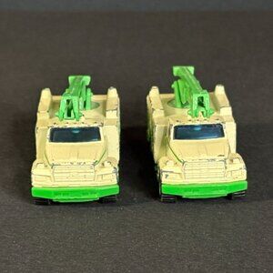 These are vintage 1989 Matchbox Utility Truck diecast toys in the "Tree Care" livery.