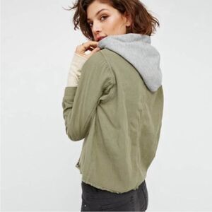 Free People Distressed Green Embroidered Detailing Boho Gray Hoodie Crop Jacket